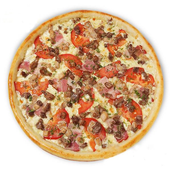 Курица, ветчина, пикантная пепперони, сырный соус, острая чоризо и моцарелла